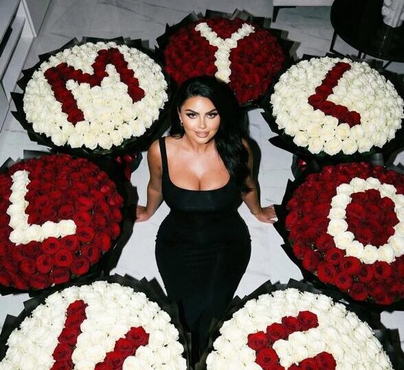 Në fotot e fundit të ndara në profilin e saj, Donjeta shfaqet e rrethuar nga një surprizë mbresëlënëse: Me buqeta gjigante me trëndafila të kuq dhe të bardhë, të cilat formojnë fjalët “MY LOVE”.