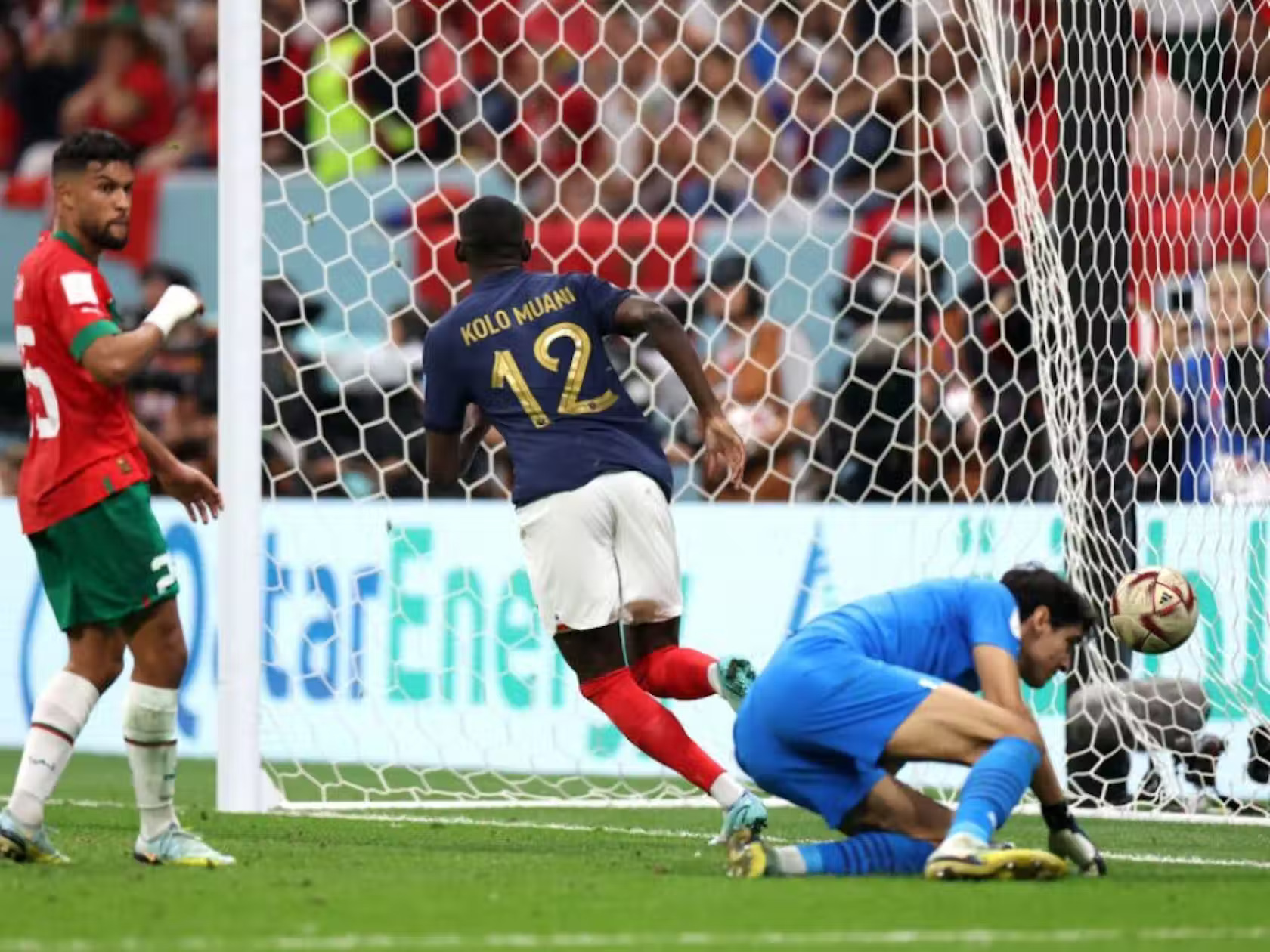 Por, kundër ecurisë së lojës, Franca rezervoi vendin e saj në finale me 10 minuta të mbetura, ndërsa Randal Kolo Muani goditi në shtyllën e pasme me prekjen e tij të parë vetëm pak çaste pasi hyri në fushë pasi një goditje e devijuar hyri në rrugën e tij për të tretën. goli më i shpejtë ndonjëherë për një zëvendësues të Kupës së Botës – i shënuar në 44 sekonda.
