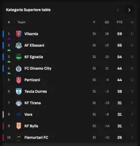 Bylis-Dinamo dhe Elbasani-Partizani ishin ndeshjet që mbyllën javën e 31 të Kategorisë Superiore dhe në përfundim të saj është dhënë tashmë një verdikt. Vllaznia tashmë është skuadra e parë që siguron matematikisht vendin e saj në fazën e ‘Final Four’.